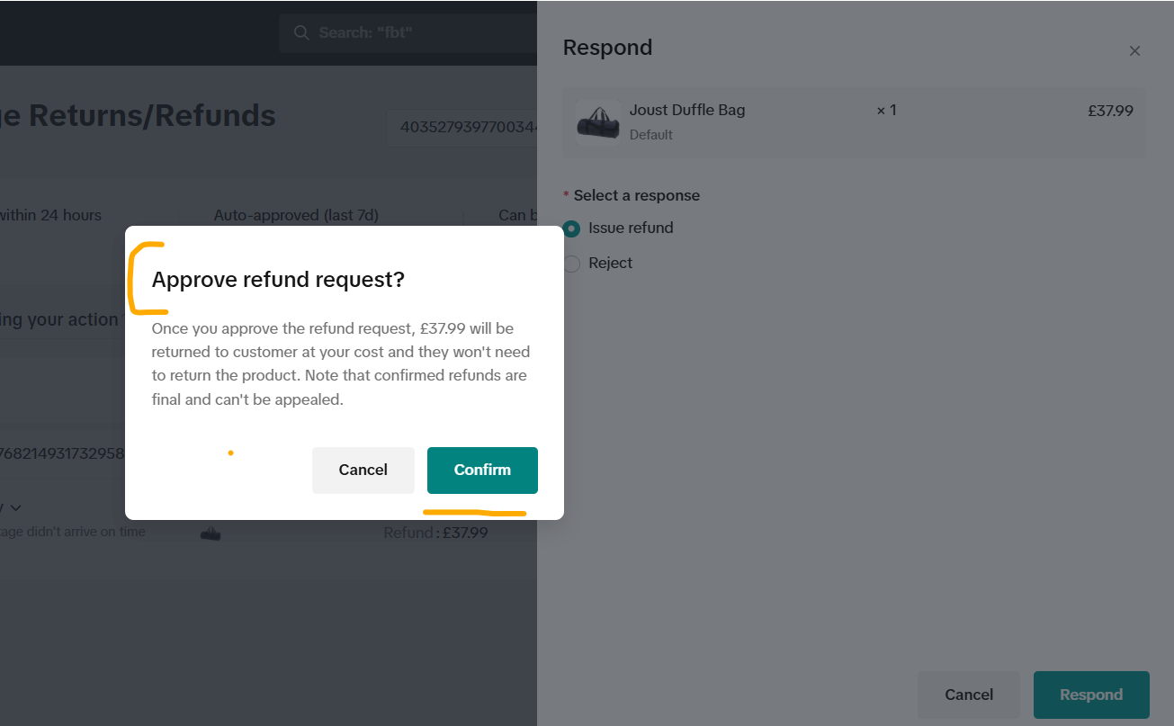 - If you request a refund after the shipment has been created, you must approve the refund from the Admin section and then submit the refund.
