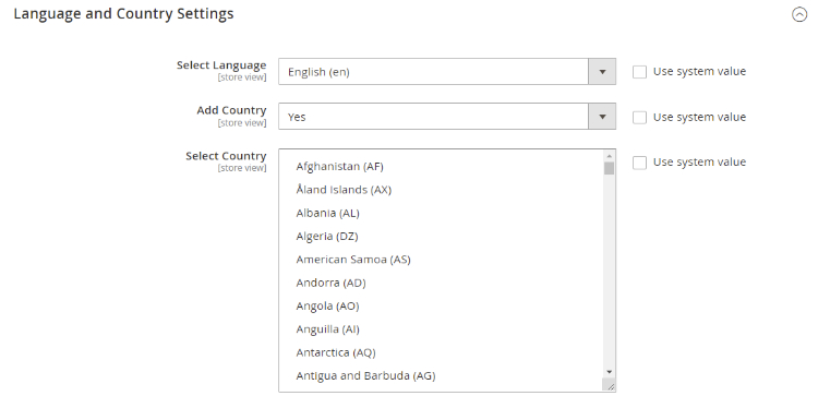 - Add Country – Select "Yes/No". If set to "Yes" then only the "Select Country" option will be visible.