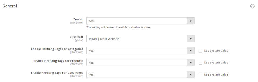 - Enable Hreflang Tags for CMS Pages – Select "Yes/No". If set to "Yes" then it will enable Hreflang Tags for the CMS Pages.