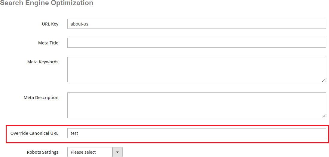 - CMS Canonical Enable – Set it to yes, if you want canonical tag on cms pages.