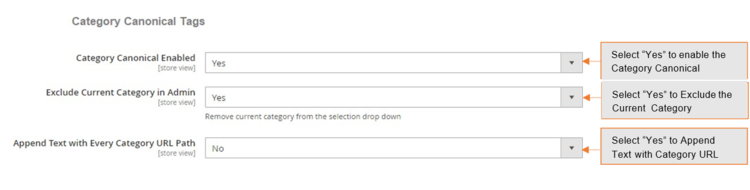 - Category Canonical Enable – Set it to yes, if you want canonical tag on category pages.