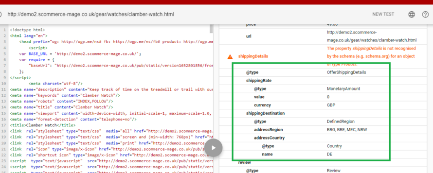Shipping Markup Code - To add structured data markup code on product page, set "Enable" to "Yes" from, Admin > Stores > Configuration > Scommerce Configuration > Rich Snippet.