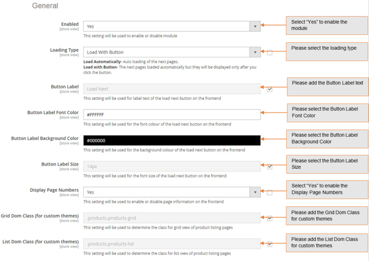 • Button Label Font Color - Set font color for "Load with Button" which appears on site front-end.