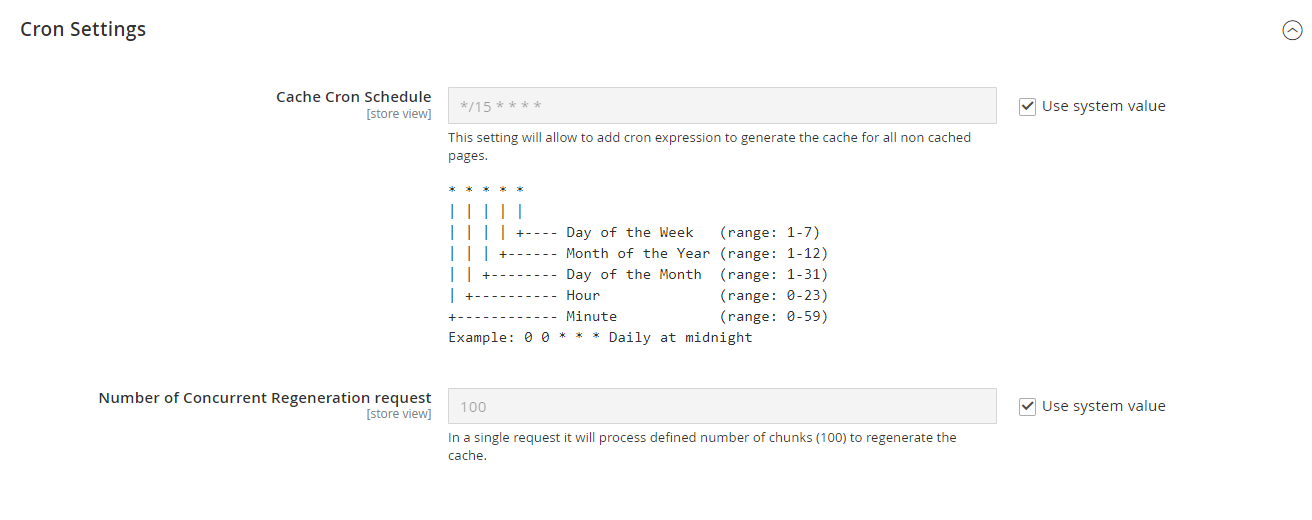 • Cache Cron Schedule - Schedule cron job to regenerate the cache for all non cached page(s).