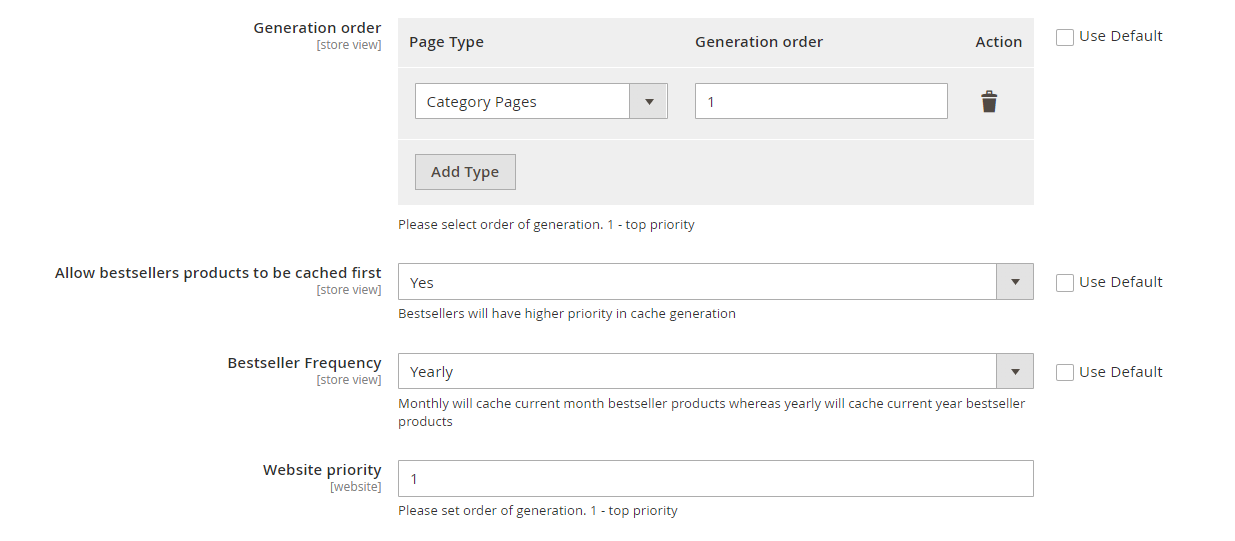 • Website priority - In multi website structures change the website in order to prioritize which will be cached first. 1 is highest priority.