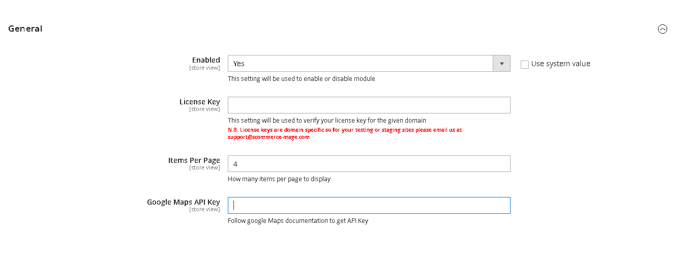 - Enabled - Enter the Google Maps API key to fetch the map for each store