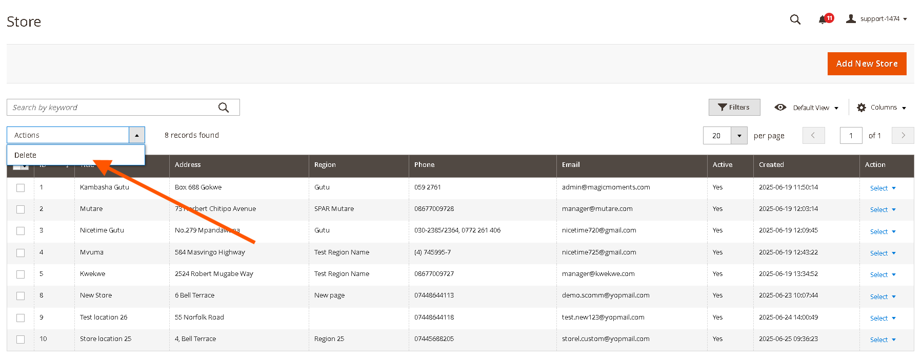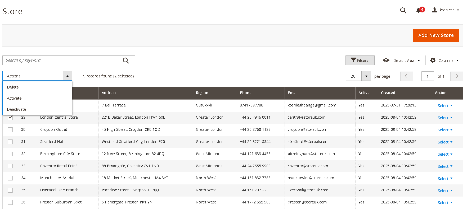 2.5. Mass Action to Activate/Deactivate/Delete Store Locations