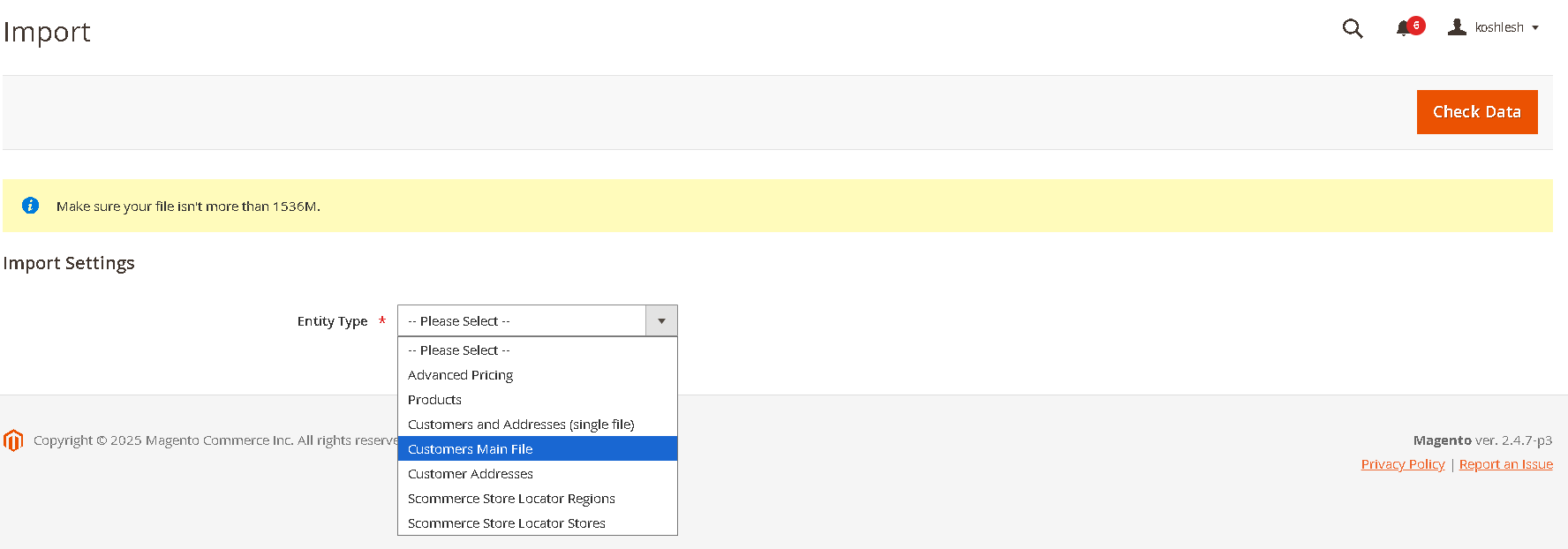 Go to Admin>System>Data Transfer>Import.