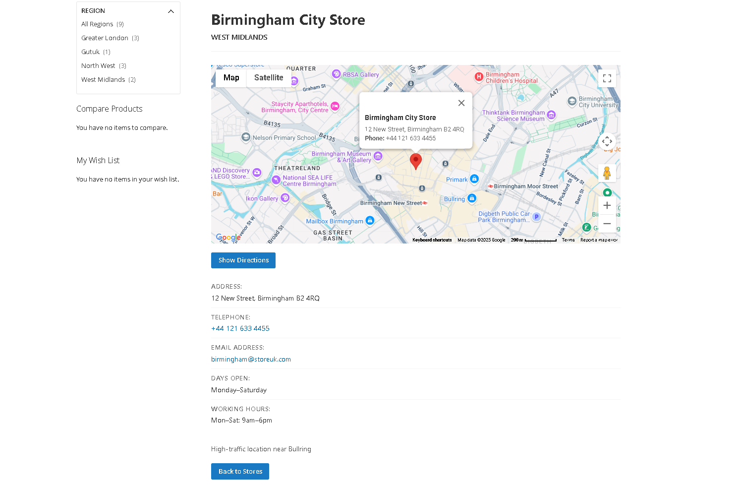 - Click the "Back to Stores" link or button. This will navigate you back to the previous store listing page, whether it was filtered by region or showing all stores.
