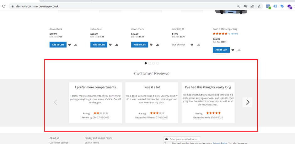 You can add this review slider to any category page, CMS page and CMS block