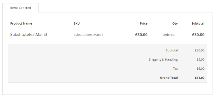 We place the order with the main product having sku SubstitutetestMain but since this product is out of stock the order should be fullfilled with the substitute product assigned. Now upon placing the order go to My Account>My Orders and view the order, you will be able to see that the order is placed with the substiute product.
