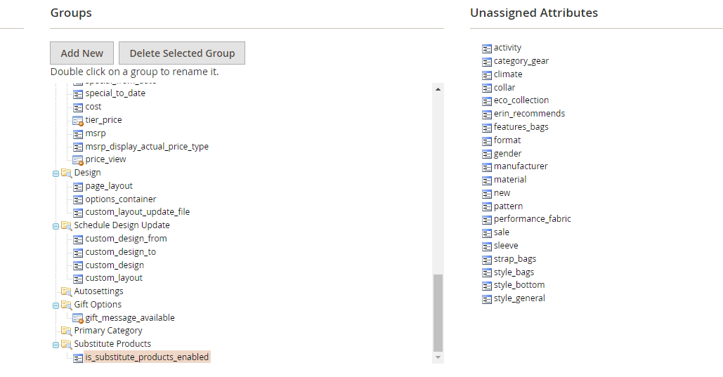 Cause: This issue occurs when the necessary product attribute, is_substitute_products_enabled, has not been correctly assigned within its attribute set. For the extension's interface to work correctly, this attribute must be placed inside a specific group named "Substitute Products."